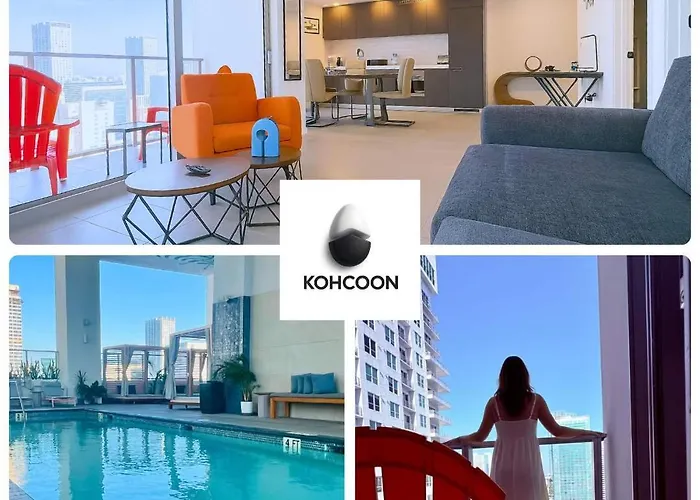High Floor Heart Of Downtown Miami 2 Bed Heated Pool & Gym Villa si trova a una distanza di 500 metri dal Bayside Marketplace e dispone di una piscina e di un patio soleggiato per il piacere degli ospiti.